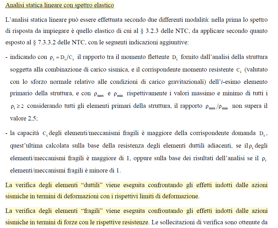 Tale metodo è stato mantenuto anche si tratta di un retaggio dalla precedente circolare che prevedeva verifiche in termini di deformazione nel caso di spettro elastico (si veda immagine sottostante).