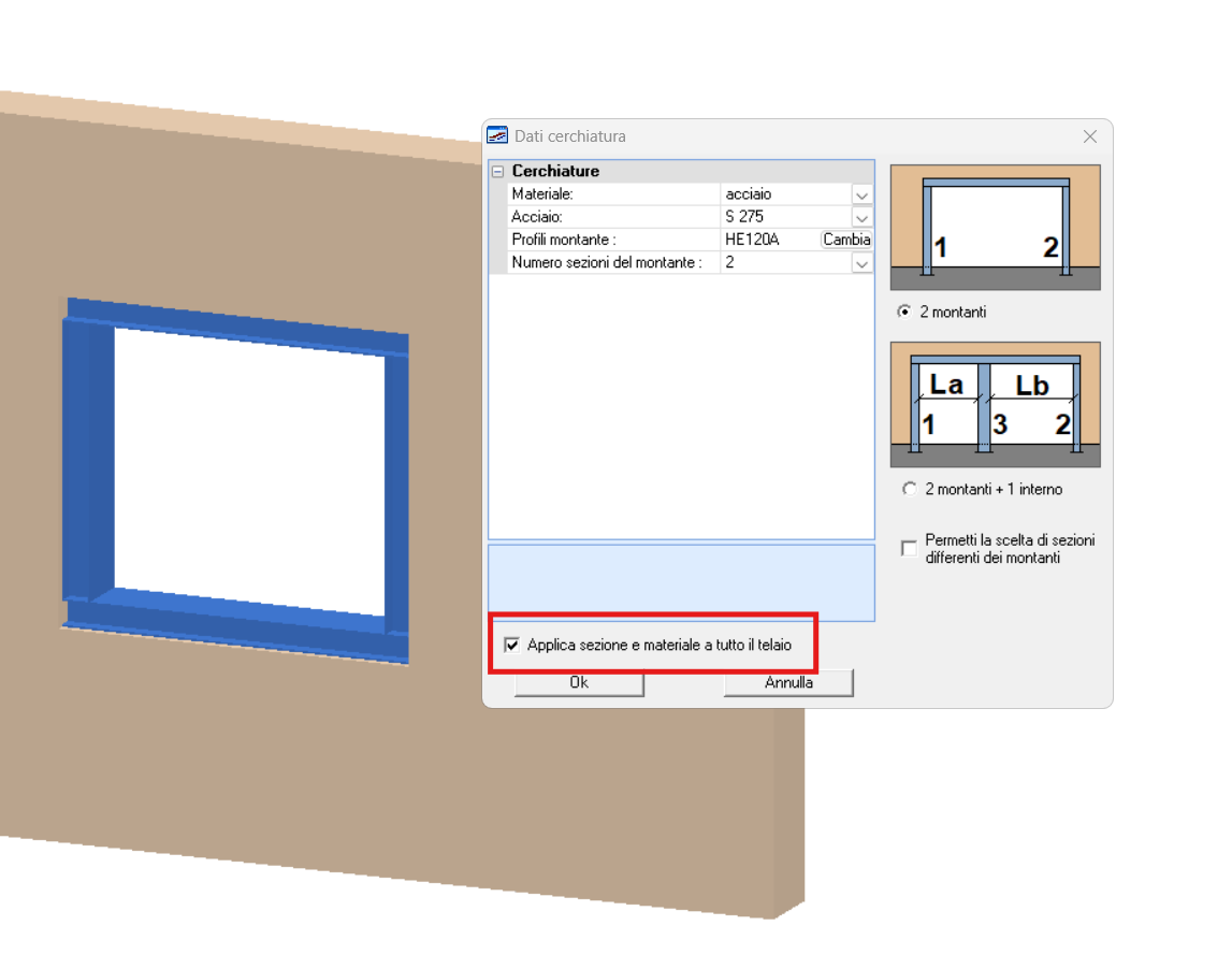 - Inserita la possibilità di editare contemporaneamente tutti gli elementi del telaio applicando sezione e materiale a montanti ed architravi