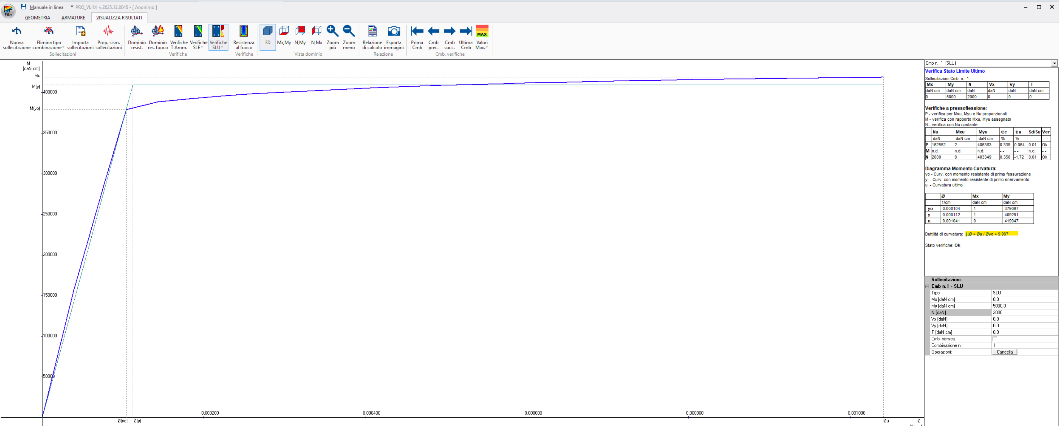 - Aggiunta la possibilità di calcolare il coefficiente di duttilità in curvatura, introducendo il rapporto tra la curvatura massima e quella alla prima fessurazione.