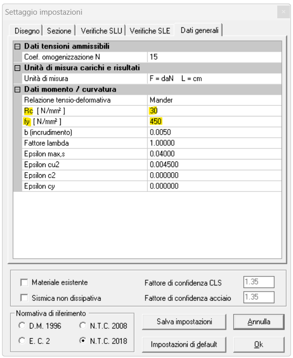 -Corretto il trattamento dei dati di input per il calcolo momento-curvatura: i valori di Rcd = 0.85 Rc/γM ed fyd = fy/γM non devono più essere inseriti manualmente. Ora il software li ricava automaticamente in fase di calcolo a partire dai parametri caratteristici/medi del materiale.
